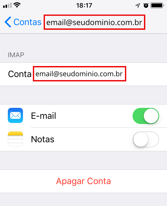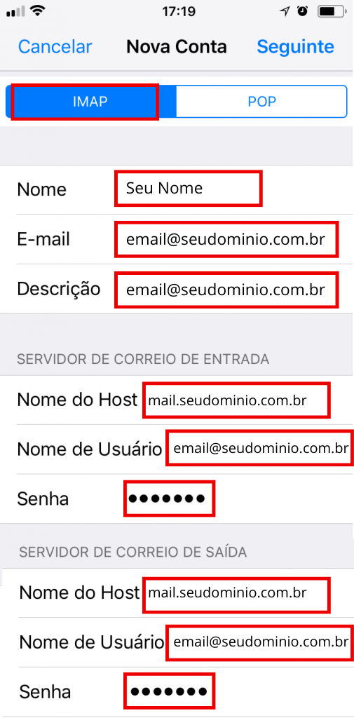 Essa escolha é essencial para que o e-mail funcione corretamente no iPhone.