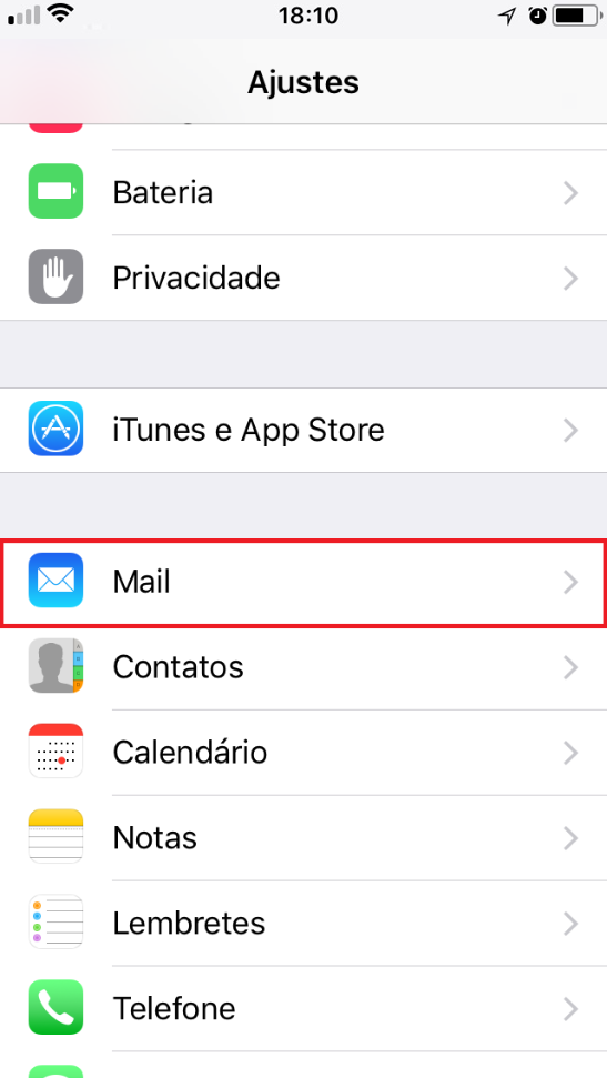 - Volte em Ajustes → Mail → Contas